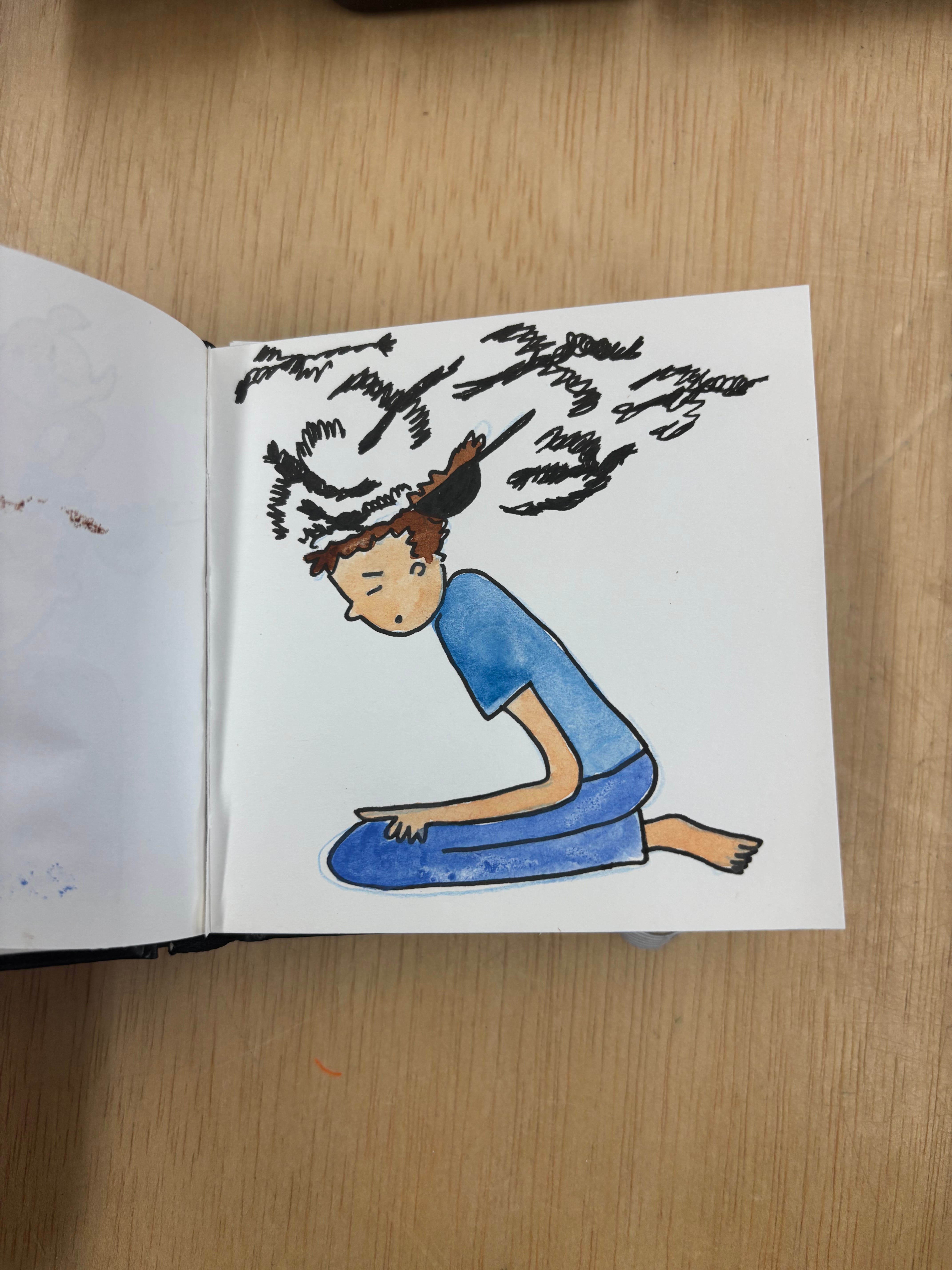 I was much more comfortable reading my fiction at intermission than I was having people lean in and look at the little cartoon self portraits of me trying to meditate or falling into my phone or of Ozzy peeing on yucca plants.